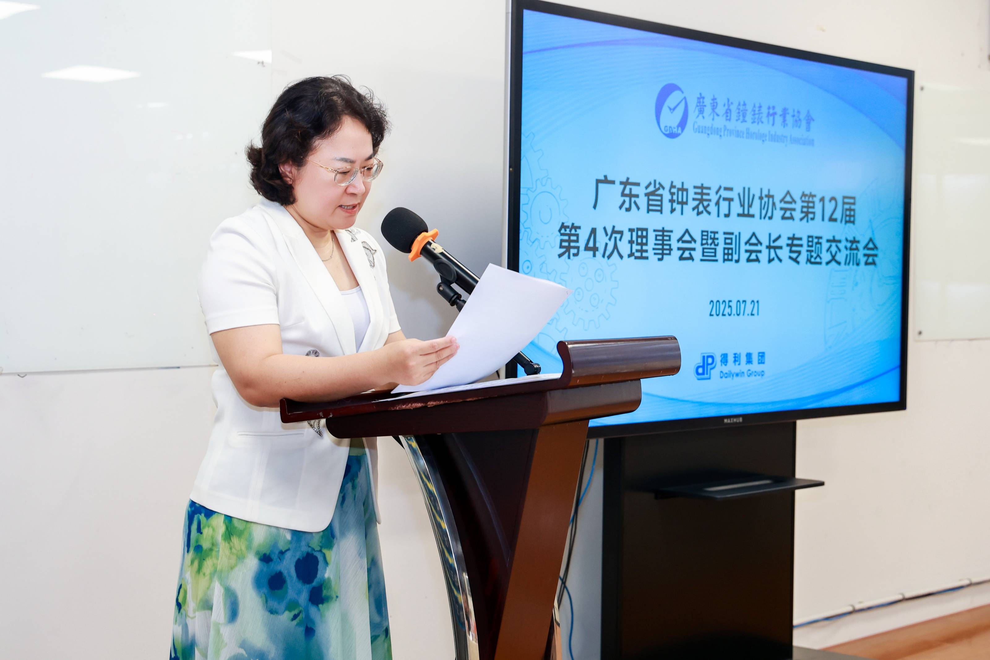 【本会讯】2025年7月21日,广东省钟表行业协会第十二届第四次理事会在东莞得利钟表集团隆重举行。会议以"凝聚共识拓新路,提振消费谋发展"为主题,会议审议通过了第十二届长四次理事会的工作报告,讨论行业热点、痛点问题,为行业高质量发展开拓新路。沙胜昔会长、执行会长黄穗葵及理事单位代表45人出席。